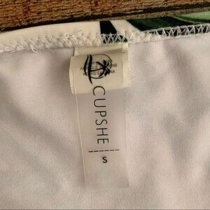 This Cupshe two-piece cheeky bikini bottom in size small features a vibrant banana tropical palm leaf print in green and white. Designed for a flattering fit, it’s perfect for beach days, poolside lounging, or tropical vacations. Made from high-quality, stretchy fabric, it offers comfort and style