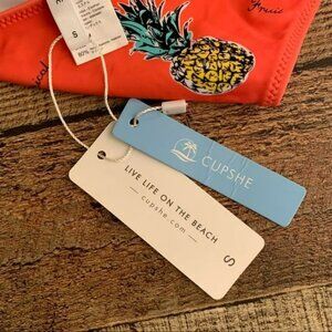 Cupshe womens coral pink pineapple bikini swimsuit bottom - S