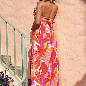 The tropical print and maxi length make it perfect for summer getaways, beach vacations, or resort lounging.
