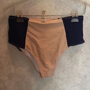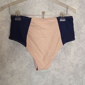 Cupshe Color Block Tan and Blue Swimsuit Bottom Size Large