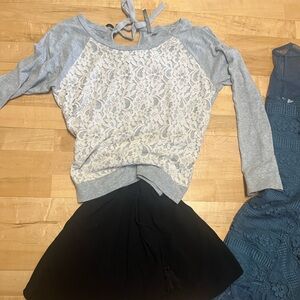 •Cream lace & gray sweater top | Lauren Conrad | size xl (fits like a l) | excellent condition