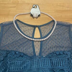 Keywords: lace, sweet, whimsical, wedding, flirty, floral, teal, cotton, fun, casual, elegant, cropped, summer, spring, country, modern, bridesmaid, date night, mini, new