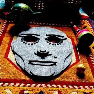 • Sculpted Face Felt Mask: An intriguing, hand-crafted felt mask with a sculpted facial design. Its origins remain a delightful mystery, making it an exceptional and conversation-starting addition to this collection.