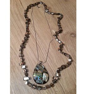 Curated bundle 2 Abalone Shell Necklaces, abalone shell beads and pendant on a silver tone chain.
