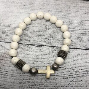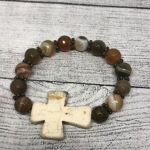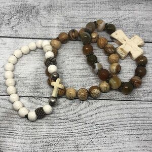 Curated bundle lot 3 roll on/stretch stone bracelets religious cross