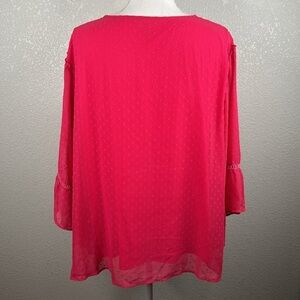 Curations Boho Hot Pink Swiss Dot Floral Embroidered V-Neck Top Size Large