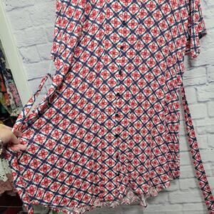Curations Button Front Popover Dress Sz M Belted Retro Housewife Geometric Boho