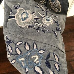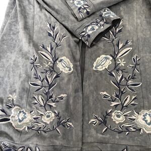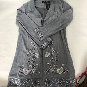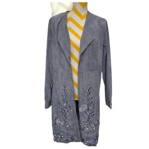 Curations Long Jacket Blue Faux Suede Boho Embroidered Duster Women Med ium NWT