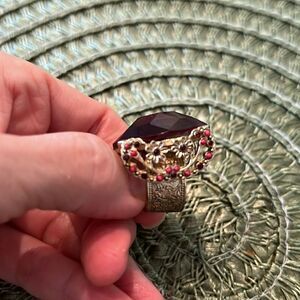 Curations beautiful large red stone ring w/flower details on an ornate band EUC