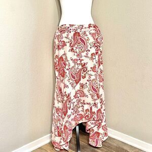 From work-day wonderful to weekend wows, this high-low skirt brings back all that you love in versatile dressing. Color: Blush Paisley•Fabrication: Chiffon non-stretch woven•Waist: Flat front with back elastic•Skirt Type: Full•Lining: Full•Hemline: High-low•Thank you for stopping by my closet! I offer a 20% discount on bundles of 2 or more items.