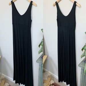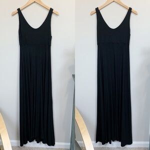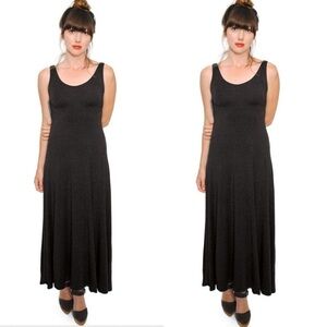 Black super soft sleeveless Sandy maxi dress by Curator SF. Double layered bodice; soft stretchy modal jersey fabric. Great transitional piece; dress it up or down, pair with your favorite denim jacket, layered over a long sleeve top, belted, whatever you’re feeling!