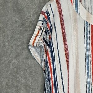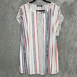Cure 3X Shirt Top White Striped Faux Tab Short Sleeve Keyhole Scoop Neck Stretch