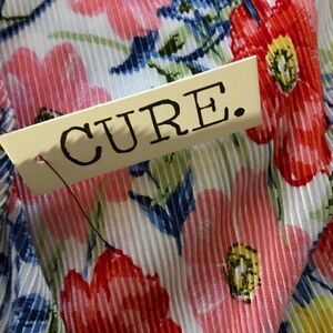 Cure SZ M top Floral pleated New with tags ties at bottom pleated