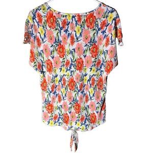 Cure SZ M top Floral pleated New with tags ties at bottom pleated - polyester cap sleeve