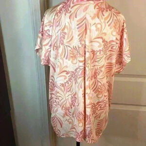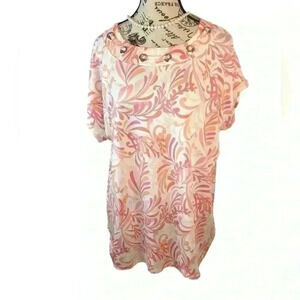 Cure Womens 1XL Blouse S/S Peach Pink and White Silver Rings at the top.