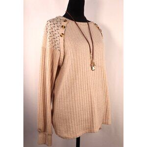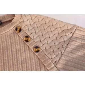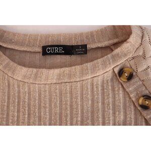 Cure Women's Beige Knit Sweater with Button Detail & Textured Shoulders Size S