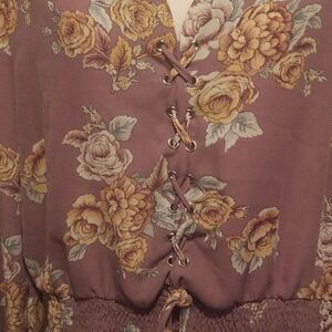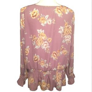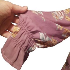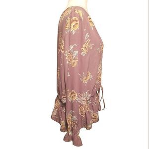 Cure Pheasant Blouse Elastic Band Flare at Hemline Dusty Rose Floral Size 1X