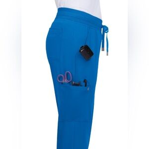 There's more than enough room for storage in the Cureology by Koi Pulse 6-Pocket Elastic Waistband Cargo Jogger! And let's not stop there, there are cool details like rib-knit waistband and ankle cuffs. Cureology by Koi is the cure for the common scrub. Outstanding comfort and breathability are what make Cureology by Koi's fabric stand out. Ultra soft to the touch, this 100% polyester twill fabric offers 360° stretch, advanced moisture wicking, and wrinkle resistance.