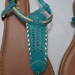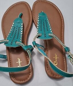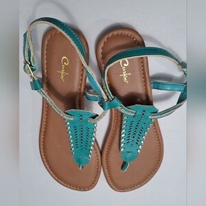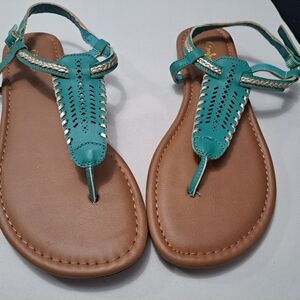 Curfew Teal Flat Sandals. Size 8M