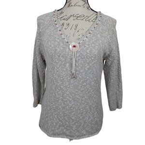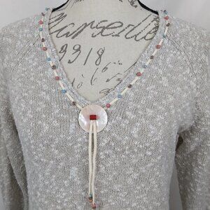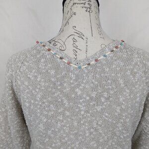 Curio | Boho Linen Cotton Beaded Sweater | Size M