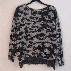 A super soft, comfy sweater! With a longer back and camo design, the sweater is unique and beautiful! Perfect for any kind of outfit!