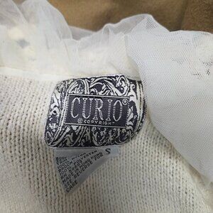 Keywords/Tags: Curio vintage cardigan, women’s small 80s cardigan, cream chiffon ruffle sweater, coquette knitwear top, cottagecore cream cardigan, retro Hong Kong knit