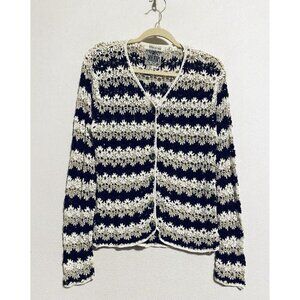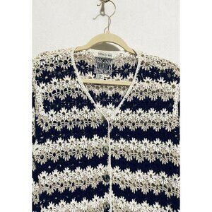 Curio Cardigan Sweeater Womens Medium Crochet Daisy Button Up Linen Blend Boho