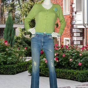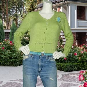 Dive into the allure of Curio's light green fairy knit crop cardigan, a cozy embrace of pastel nostalgia and chic simplicity. Its ribbed texture and wavy hem whimsy offer a unique blend of casual coolness and vintage-inspired modernity. Perfect for effortless layering or as a subtle statement piece, it's a soft girl's dream with a Y2K throwback touch. Size M.