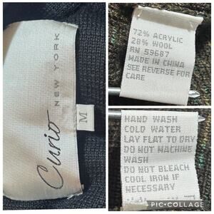 Curio New York Cowlneck Sweater M Pullover Color Block Black/Green Asymmetric Lagenlook Boho Indie chic.