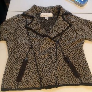 Curio New York Large leopard print cardigan zip front blazer look with pockets