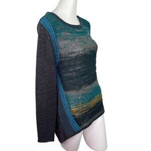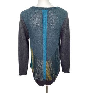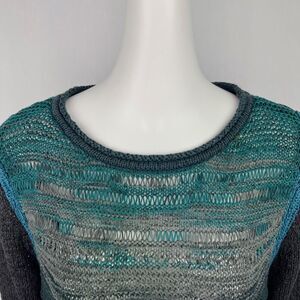 Curio New York Long Sleeve Hi Low Hem Tunic Open Knit Sweater Multi Color Sz M
