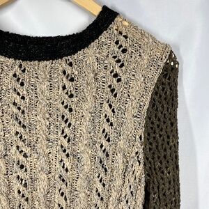 Curio New York Sweater Asymmetric Hem Olive Green Beige Wide Knit Women’s Small