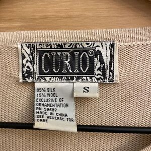 Curio Size Small Wool Silk Blend Floral Embroidered Button Front Cardigan