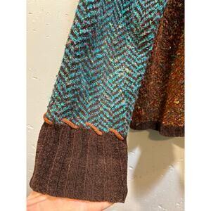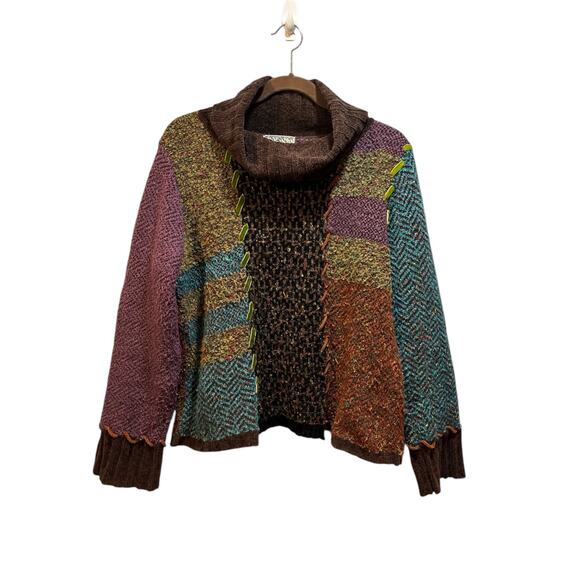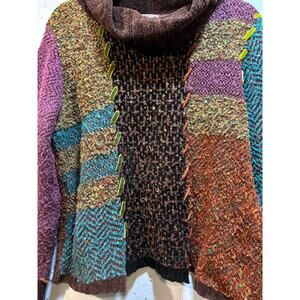 Beautiful multicolor knit turtleneck sweater. Size XL bust 40”, length 22”. Brown, blue purple green and orange.