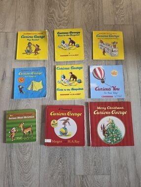 Collection of 12 curious George books. 3 are hardbacks (bottom row) 6 are paperback. 1 is a duplicate. In good pre-owned condition.