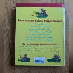 Collection of seven original Curious George stories. Features playful illustrations on a yellow and red cover.