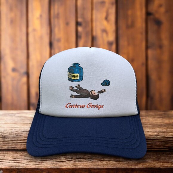 Curious George Ether Mens Trucker Hat Navy Parody Meme Baseball Cap