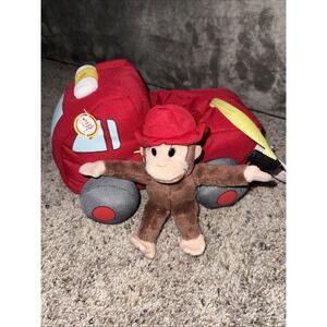 Curious George Fireman Plush Firetruck Lights Sound 2 Piece Stuffed Toy Works