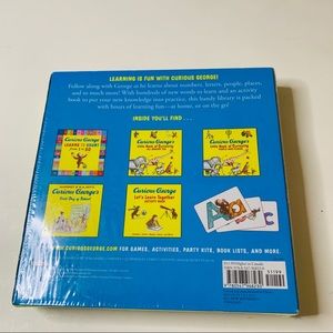 This set includes 5 Curious George paperbacks plus ABC flashcards in one convenient library