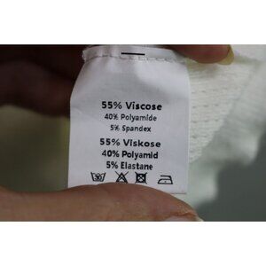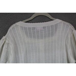 This is a Vintage Curlbiuty Short Sleeve Scalloped Open Knit Button-Up Sweater that is a size 2XL. It is 55% Viscose, 40% Polyamide, and 5% Spandex. It is very feminine with small scallops around the neckline. Laying flat, it measures: Armpit to armpit-24" and the Length is 23". It is in good condition.
