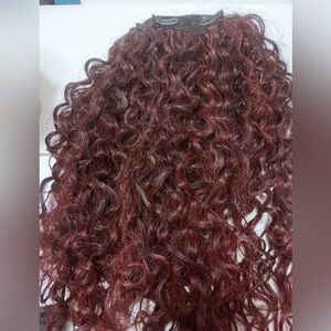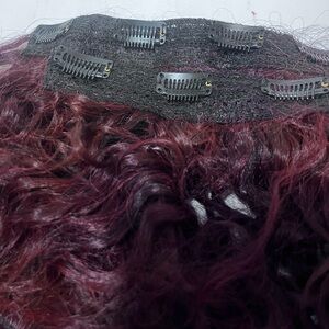 Enhance your look with this stunning curly burgundy hair extension. Perfect for adding volume and style.