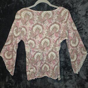 Curly Girl 90's Paisley Square neck Boho top with Tie in Back Size M L