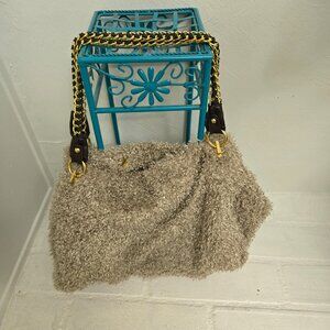 Preowned, Like New. Gold Colored Chain mixed in Woven strap
