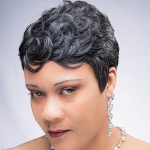 Full Synthetic Wig with a curly top. This wig should be styled with only your fingers, combs and brushes are not recommended. Perfectly blended salt & pepper hair that can be heat styled..but why would you.