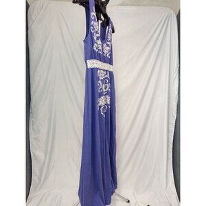 • Currants Women's Purple White Floral Sleeveless Maxi Dress Faux Floral Embroidered Elastic Waist Lace at Waist Sleeveless Scoop Neck Measurement Lying Flat Pit 2 Pit 15in Dress Length 51.5in RN 89828