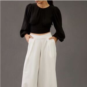Gorgeous statement piece cropped blouse with smocking, shiny sequins and buttons on the back, and big billowy puffy sleeves. Great for party, to wear with a pair of jeans, high heels, or white pair of wide leg white pant, red, Green, and hot pink would look stunning!