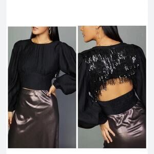 Current Air Black Sequins Open Back Puffy Balloon Sleeves Top Blouse - Small