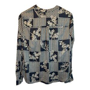 Current Air Anthropologie Black/Taupe Silk Surplus Blouse Medium Mandarin Collar