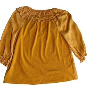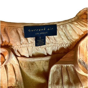 Anthropologie Current Air gorgeous mustard yellow shimmery blouse. Please note the inside snag and the outside pics. This call out is on the bag lower right of the top. Due to material it is not very noticeable. Ask for more pics. Make an offer. You will love this blouse! Great Fall piece.