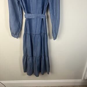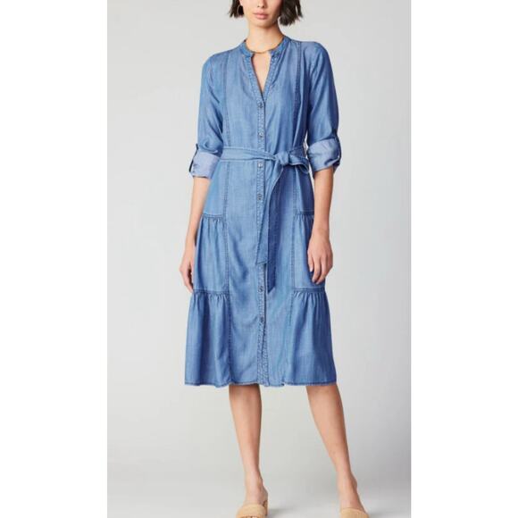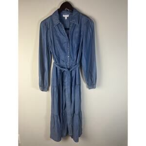 Current Air Anthropologie MIDI Dress Chambray Tired Collared Belted Boho M